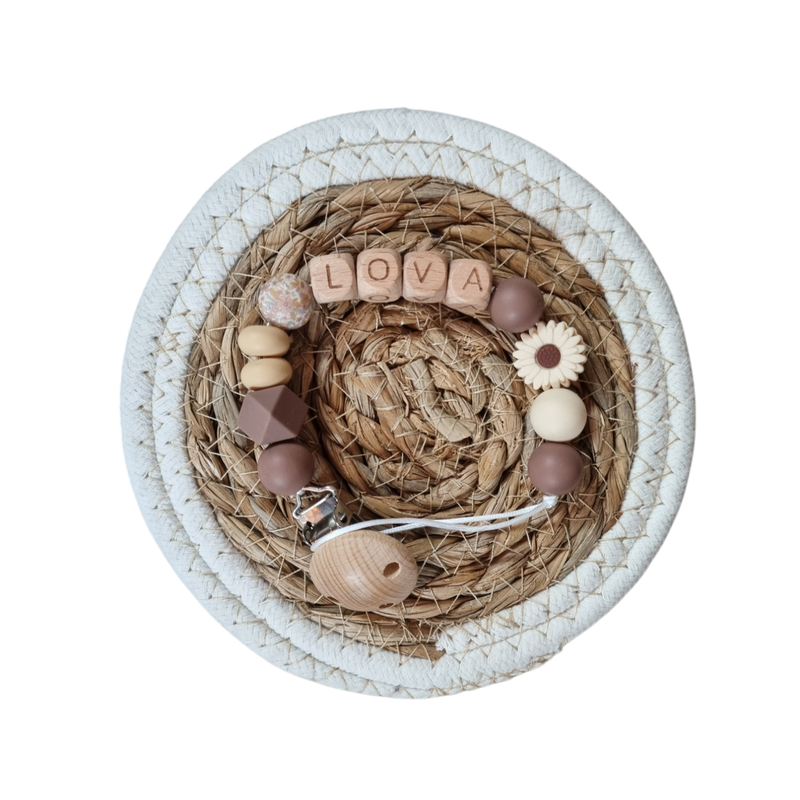 Heeft uw kindje een prachtige naam gekregen met een speciale teken (bijvoorbeeld Corné) of een streepje tussen de namen (bijvoorbeeld Anna-Mae)? Dan is dat bij Little Lova geen probleem! De speenkoorden met naam kunnen besteld worden met een letter kraal maar keuze.
