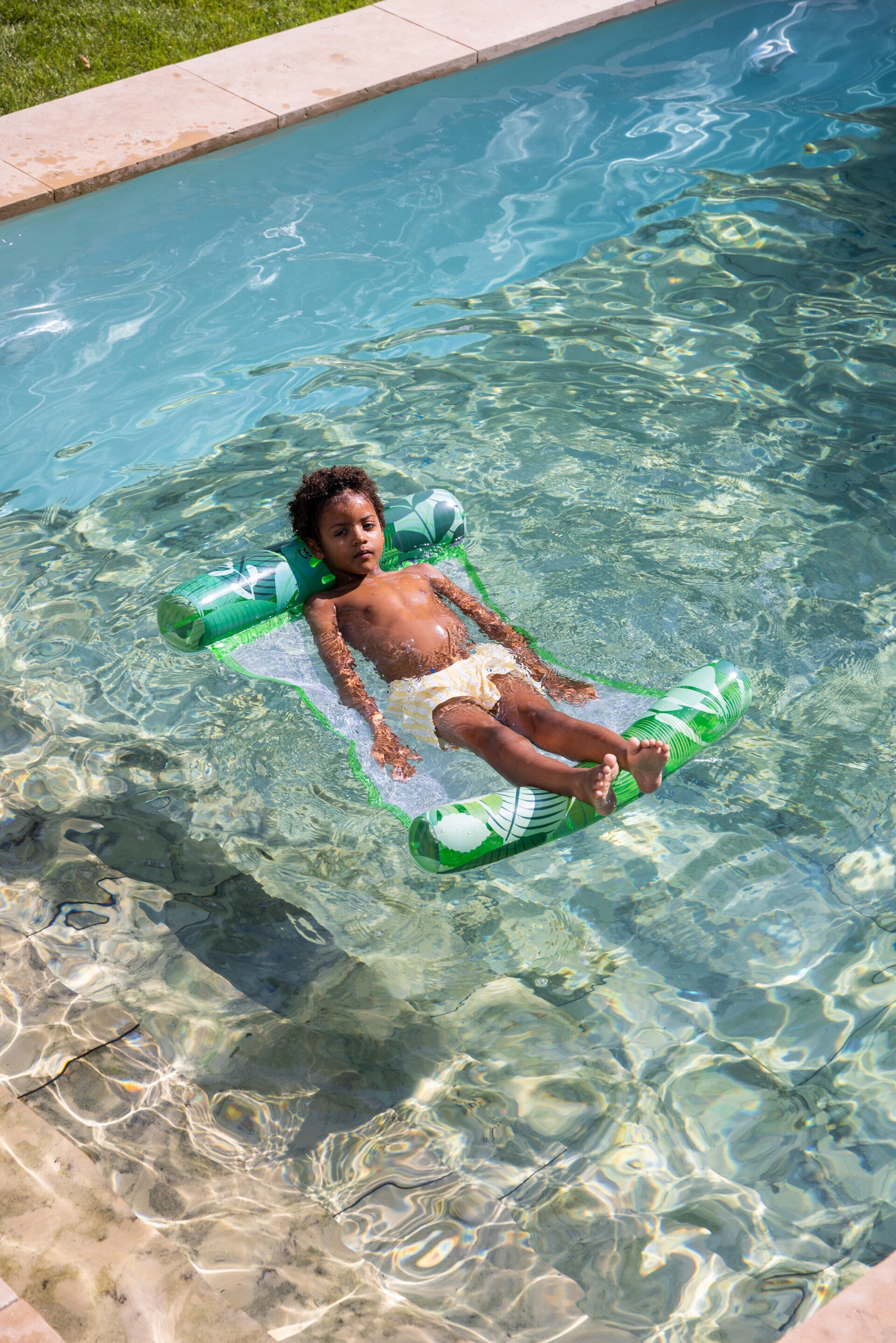 Een heerlijk zomers design en een lekker hangmatje om op te relaxen - de Waterhangmat met Groen Tropical design van Swim Essentials maakt jouw zomer compleet! Het net in het midden kun je lekker op relaxen, en je hoofd en voeten worden boven water gehouden door de steuntjes aan beide kanten. De waterhangmat is geschikt vanaf 6 jaar en heeft een lengte van 116 cm.