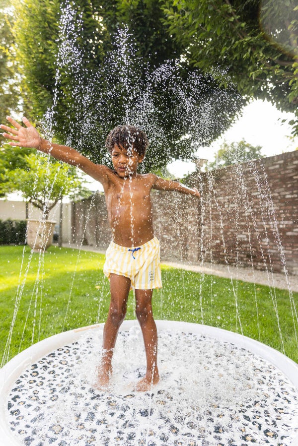 De hele zomer lang plezier én verkoeling met de Waterspeelmat met unieke beige panterprint van Swim Essentials! De watermat met sproeier is aan te sluiten met een tuinslang en heeft een diameter van Ø 150 cm. De opblaasbare rand sproeit stralen water waardoor je kids wanneer ze eronder staan lekker kunnen spelen en ook nog eens verkoelen tijdens de hete zomerdagen. Aan te raden vanaf leeftijd 3 jaar.
