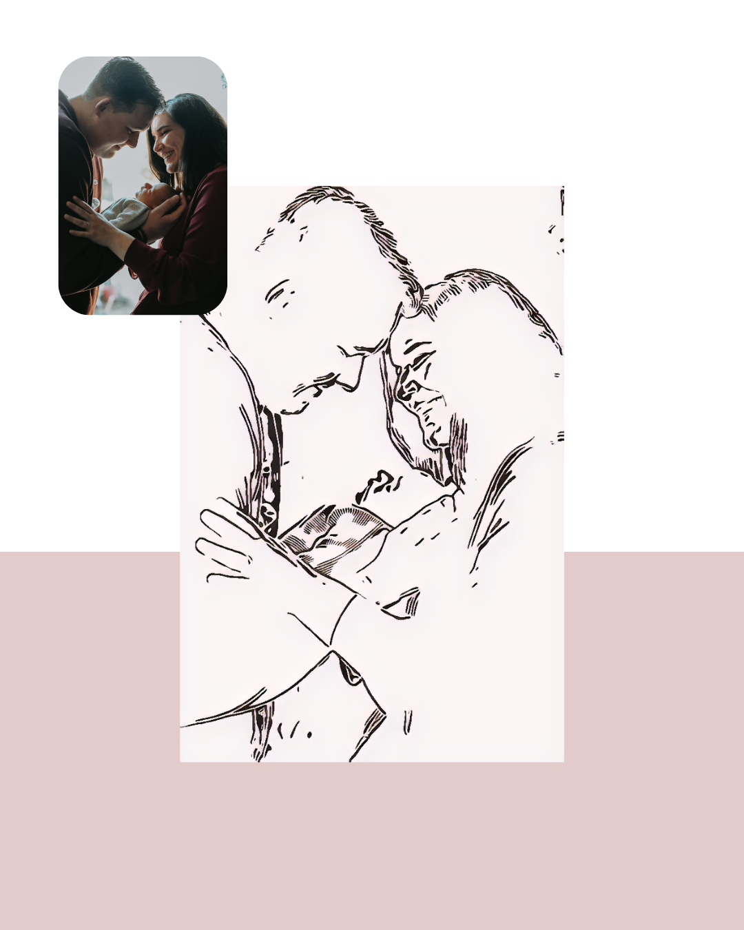 Transformeer je interieur met onze prachtige lijntekening gemaakt van jouw persoonlijke foto. Een lijntekening is meer dan alleen een afbeelding. Het is een minimalistisch kunstwerk! De essentie van een lijntekening ligt in zijn eenvoud. Het focust op vorm, beweging en de pure schoonheid van de persoon zonder afleiding van kleur of schaduw. Deze lijntekening is meer gedetailleerd dan een klassieke lijntekening.