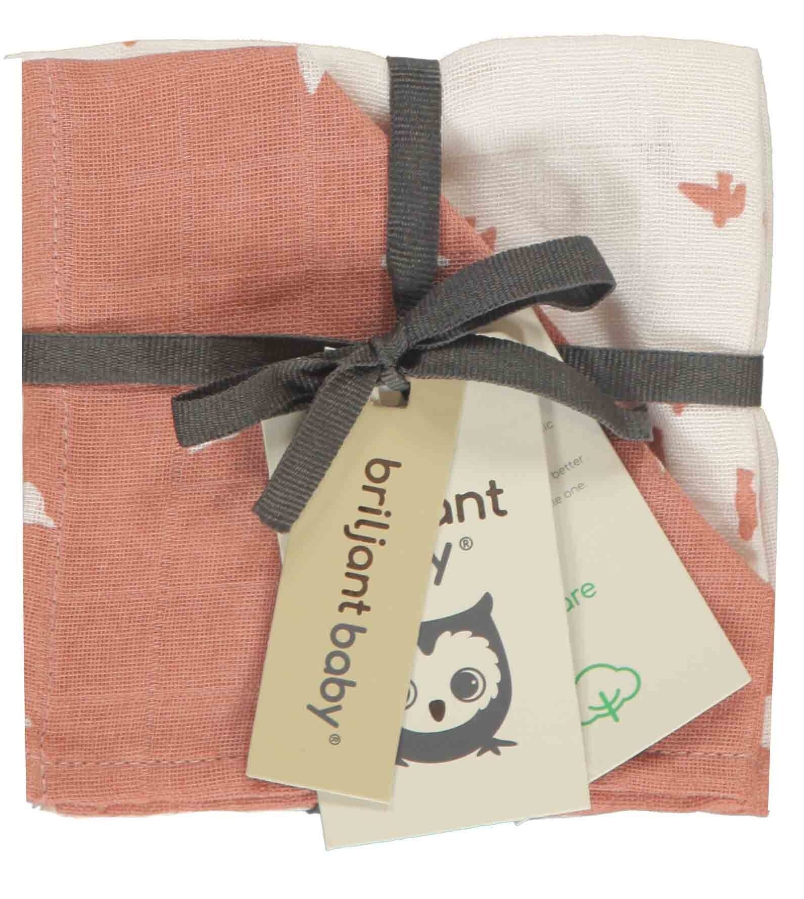 Hydrofiele monddoekjes van Briljant Baby zijn, door de heerlijk zachte stof en door de zeer hoge absorptie van vocht, ideaal voor het afvegen van de mondjes van baby's. gemaakt van 100% organisch katoen. De hydrofiele monddoekje zijn 30x30cm groot en worden per 4 stuks geleverd. Wassen kan tot 40 graden! Geschikt voor de droger. Dit product komt uit onze Bird collectie. Een collectie gemaakt van organic katoen in prachtige nieuwe kleuren.