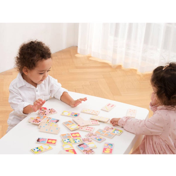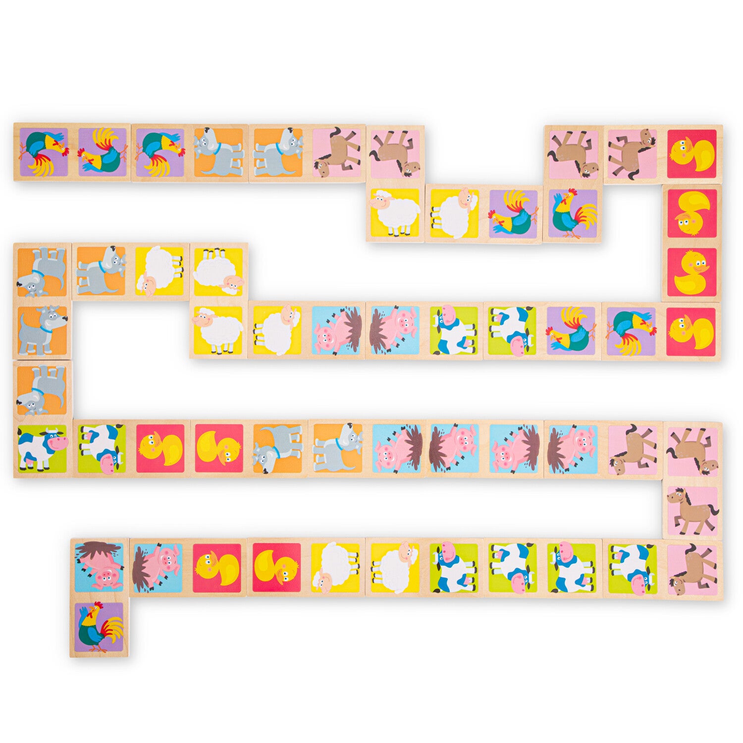 Dit houten dominospel van New Classic Toys is een perfect spel voor de kleintjes. Het heeft 28 dubbelzijdige dominostenen met vriendelijke boerderijdieren aan de ene kant en stippen aan de andere kant. Het spelen van dit spel is een uitstekende activiteit voor het ontwikkelen van fijne motoriek, probleemoplossend vermogen en het trainen van logisch denken. Moedig sociaal spel aan terwijl kleintjes herkennings- en spraakvaardigheden ontwikkelen.