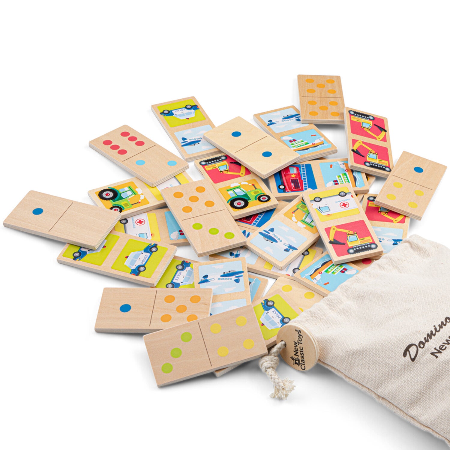 Dit houten dominospel van New Classic Toys is een perfect spel voor de kleintjes. Het heeft 28 dubbelzijdige dominostenen met vriendelijke boerderijdieren aan de ene kant en stippen aan de andere kant. Het spelen van dit spel is een uitstekende activiteit voor het ontwikkelen van fijne motoriek, probleemoplossend vermogen en het trainen van logisch denken. Moedig sociaal spel aan terwijl kleintjes herkennings- en spraakvaardigheden ontwikkelen.
