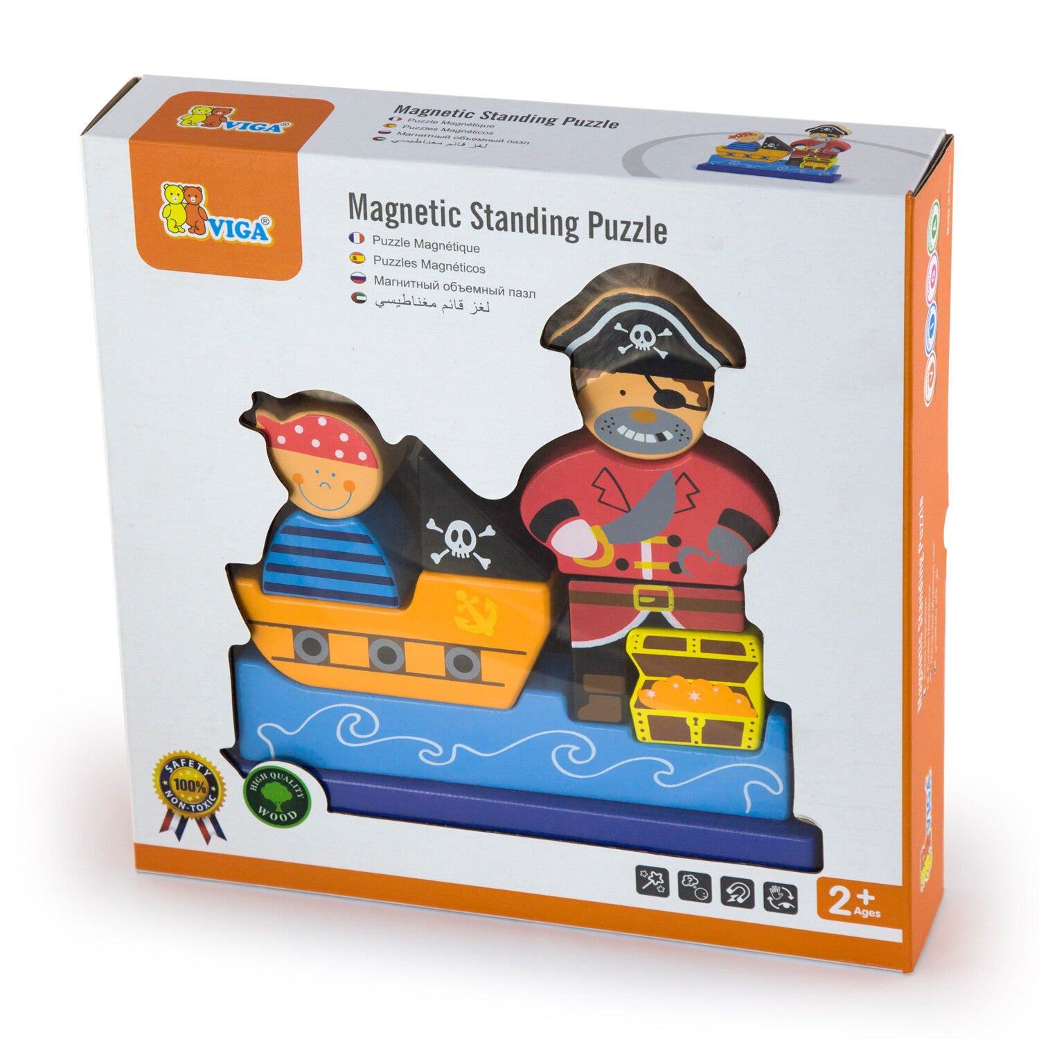 Een mooie houten puzzel van Viga Toys. Stapel de vormen op de juiste manier op elkaar en vorm de piraat. In de vormen zitten magneten zodat je de puzzel kunt laten staan. Spelen met deze houten puzzel stimuleert het herkennen van vormen, kleuren en de fijne motoriek. Voor eindeloos veel speelplezier. Afmeting van deze puzzel is 20 x 20 x 4,5 centimeter.